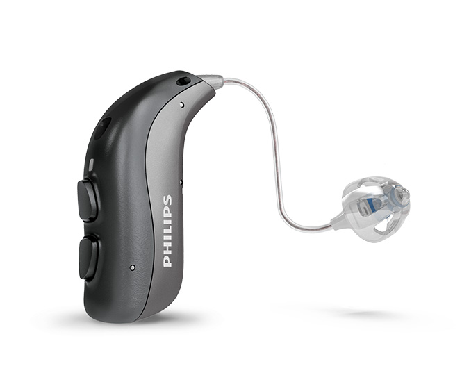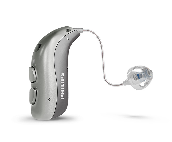 耳道接收器式助聽器小巧精緻,位於耳後,很難被察覺到。這種助聽器可配備不同的接收器,可適用於輕度至重度聽力損失。